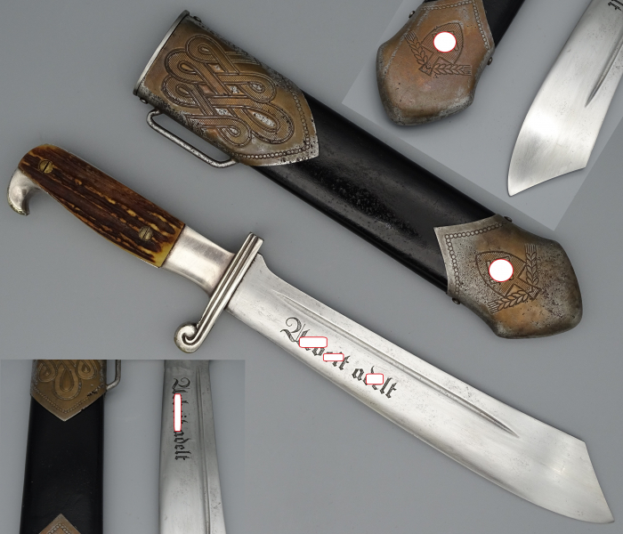 - Klinge stumpf (dürfte Original- Zustand sein) – nicht ge- bzw. beschliffen