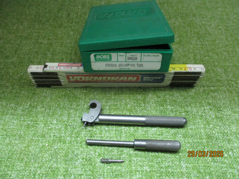 1 x berdan-entzünderungsgerät von rcbs mit haltestück und ersatzdorn - guter zustand- - -