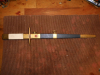 Hat ordentlich Patina, fliegt warscheinlich seit Jahrzehnten im Keller rum. Klinge ist ganz ok, Griff und Scheide können sicher nochmal poliert werden.