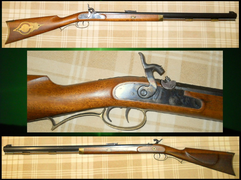 Beschreibung: ...aus Sammlernachlass - 1,16m langes und führiges Perkussionsgewehr im US - Hawken Style ... Kal. .45 ... Hersteller Ranson (Italien) ... gültiger Beschuss (Beschussjahr AB = 1976) ... ca 73,5cm langer,aushakbarer, gezogener Achtkantlauf - Züge und Felder deutlich, aber auch deutlich gebraucht - Brünierung teilweise fehlend, im Pistonbereich leichte Närbchenbildung ... im Gegensatz dazu ist der augenscheinlich rissfreie Schaft in einem schönen, als leicht-gebr. zu bezeichnenden Zustand ... das buntgehärtete Schloss geht sauber in beide Rasten - Abzug u. Stecher funktionieren tabellos ... Piston (warum nauch immer???) wohl gekürzt - Pistonsockelgewinde i.O. ... die Beschlagteile aus Messing haben etwas Patina ... den Gesamtzustand würde ich als deutlich gebraucht - noch ganz gut bezeichnen - er lässt sich sicher noch verbessern ... Versand erfolgt evtl. zerlegt
