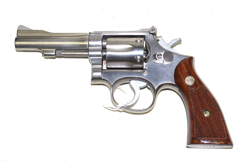 Der Stainless-Steel-Revolver hat Holzgriffschalen