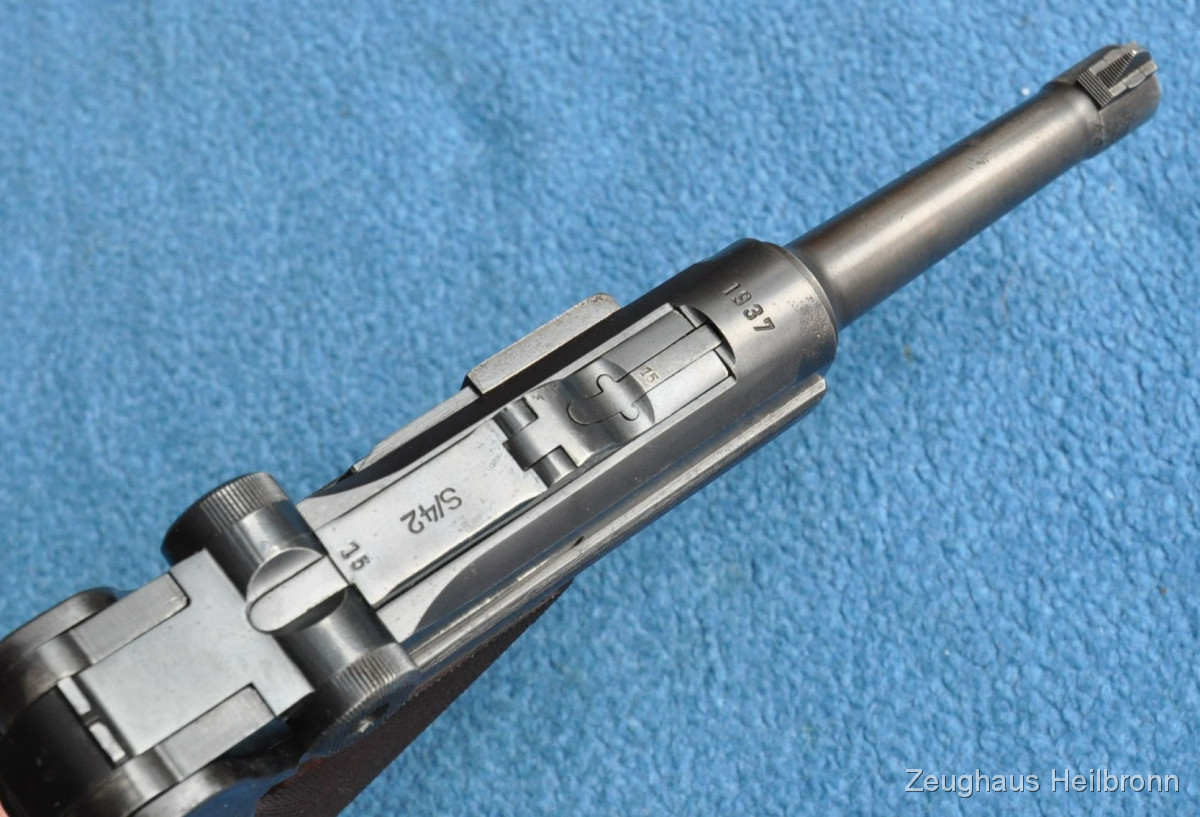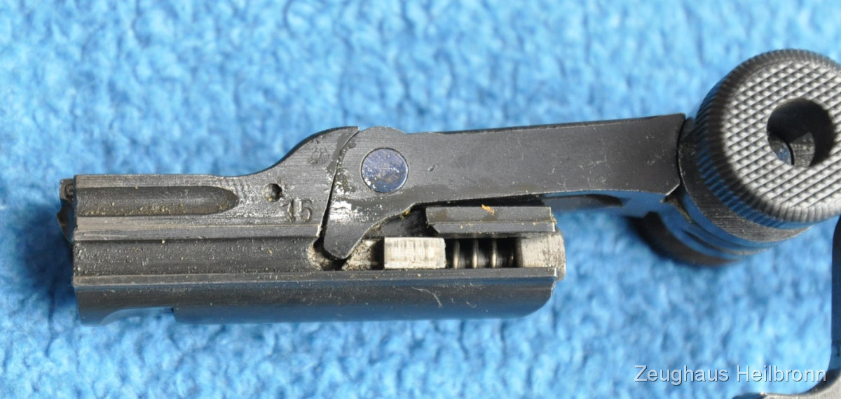 Waffe in einem unserer Einschätzung nach originalen Erhaltungszustand, nummerngleich inkl. Magazin, Zustand siehe Bilder, Züge und Felder scharf, Lauf blank, volle mechanische Funktion.