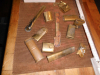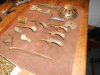Stammen aus einer Schwertfegerwerkstatt. Dabei ist noch eine Schachtel mit weichen Messingnägeln 3x30mm zum vernieten von Schalen oder sowas.