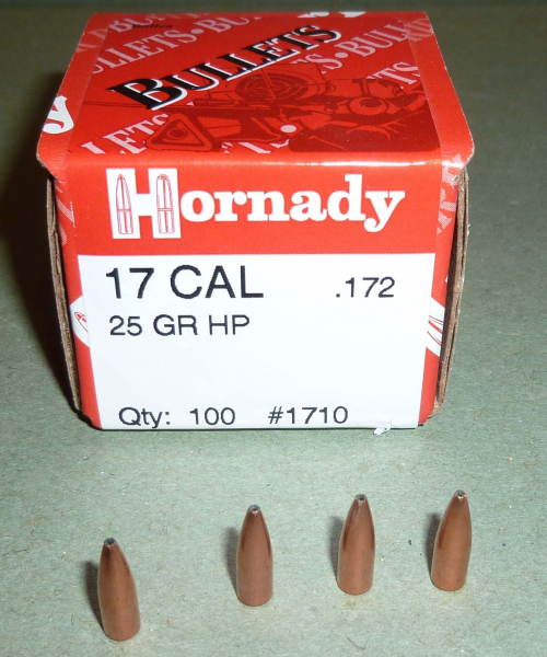 Biete von Hornady 100 Geschosse im Kaliber.17 (.172) als Hohlspitz mit 25 grain Geschossgewicht an.