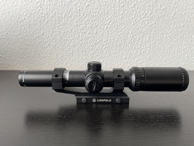 Istalliert ist es auf einer Leupold MARK 2 IMS 1 Montage. Es befindet sich in einem guten Zustand, bis auf die Abschürfung vom Lack.