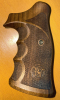 Sie bieten hier auf ein paar neuwertige symmetrische Nill-Rhomlas-Griffschalen mit Fingerrillen und geschlossenen Rücken, passend für Smith & Wesson-Revolver K/L-Rahmen round butt. Die abgebildeten Griffschalen sind in einem technisch und optisch einwandfreien Zustand.