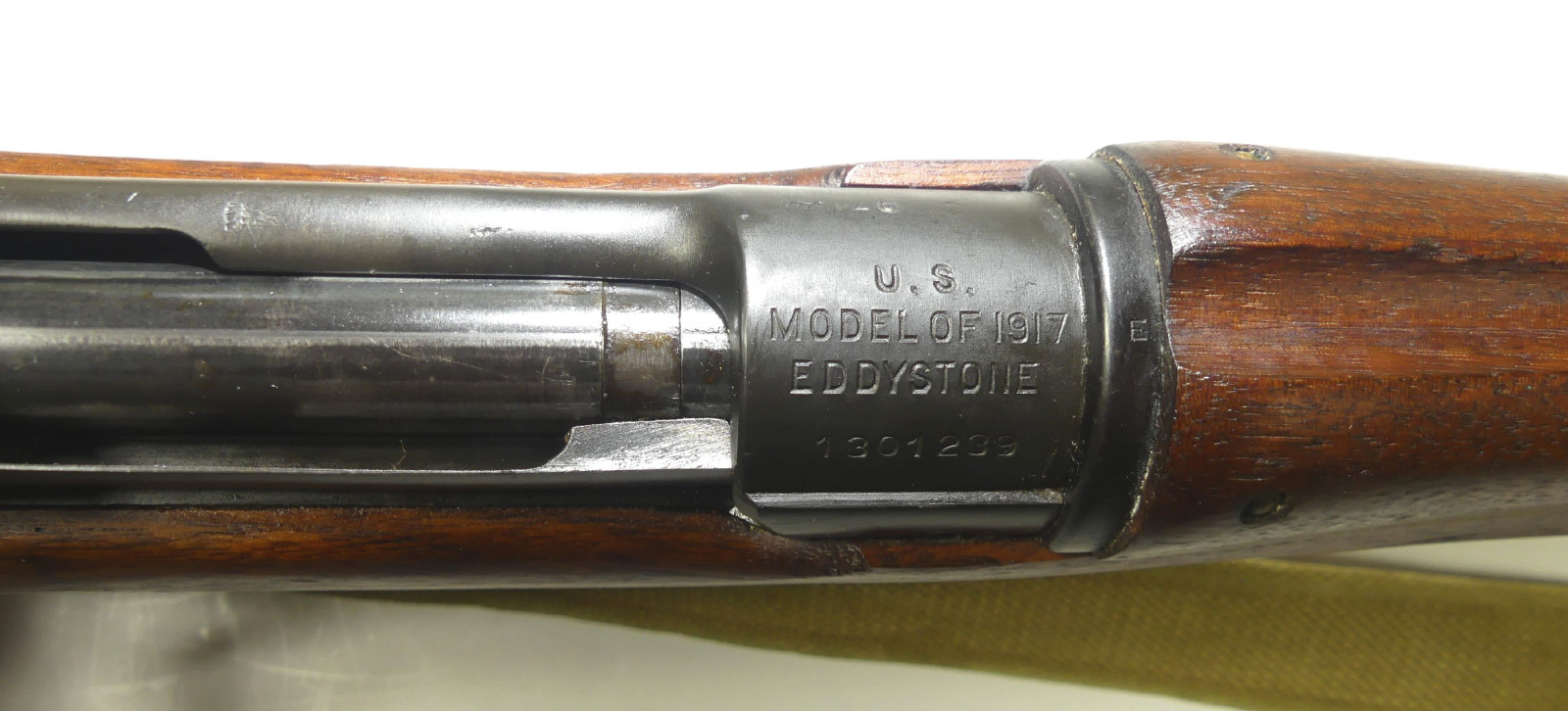 Wir bieten Ihnen hier im Kundenauftrag eine, wie sie offiziell genannt wird: US Rifle, .30 caliber, Model of 1917, Kaliber .30-06 Springfield im sehr guten Gesamtzustand. Mit US Abnahmestempel. Hersteller: Eddystone. Wie viele wissen wurde dieses Modell im ersten Weltkrieg nach dem Vorbild des britischen P 14 (Kaliber .303 British) als P 17 in .30-06 Springfield für die USA hergestellt und im ersten Weltkrieg verwendet. Auch im zweiten Weltkrieg fand dieses Gewehr Verwendung. Wie man hört verwendet das dänische Militär dieses Modell aktuell noch auf Grönland zum Schutz gegen Eisbären! Das P 17 hat eine Dioptervisierung, welche da original, auch im Wettkampf verwendet werden darf. Blanker Lauf - ideal für den sportlichen Wettkampf, wie auch für den Sammler sich ein historisches Belegstück zu sichern! Magazinkapazität: 6 Schuss. Lauflänge: 66 cm. Das System hat seine Anleihen beim Mauser 98 genommen und verfügt daher auch über den sehr zuverlässigen Patronenauszieher nach Mauser 98. Alles in allem inzwischen eine seltene Gelegenheit sich dieses zuverlässige Modell mit einer langen Geschichte, zu sichern!