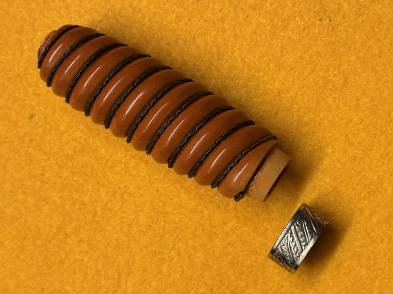 Zur Versteigerung kommt das originale Griffstück mit Ring eines Luftwaffe Offiziersdolches. Hersteller ist Fridericus, Solingen. Sie waren Bestandteil eines Luxus Dolches. Im unteren Bereich hat der Griff eine kleinen Riss, der bereits mit Sekundenkleber repariert wurde. Weitere Fotos auf Anfrage.