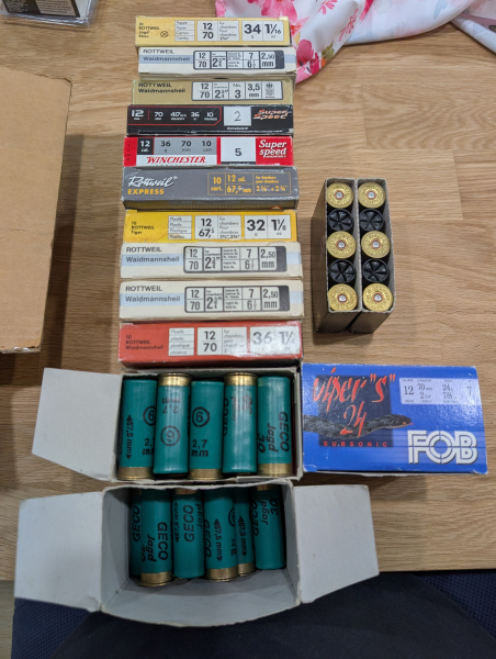 Rottweil: Diverse Packungen der Serien Waidmannsheil (Pappe & Kunststoff), Tiger und Express. Schrotgrößen von 2,5 mm bis 3,5 mm.