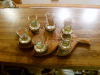 Sie bieten auf ein Schnapsgläserset auf echtem Hirschhorn auf einem Holztablett. Gläser sind mit Jagdmotiven. Das Set ist sauber und nicht benutzt. Für Feierlichkeiten im jagdlichen Rahmen eine schöne und originelle Ergänzung, auch als Geschenk für Jagdfreunde bestens geeignet.