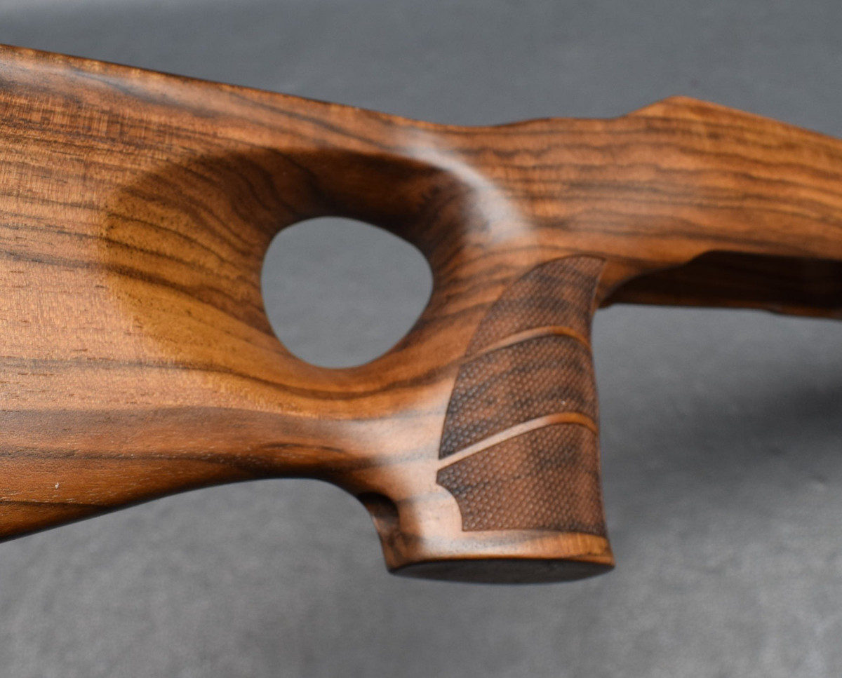 Am Pistolengriff und Vorderschaft mit griffiger Fischhaut.