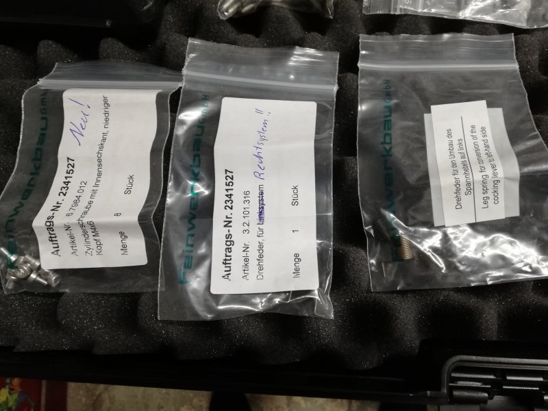 Verkaufe Feinwerkbau Match Pressluftgewehr Model 800x Individual mit Koffer , Farbe Titan , 6 Montate alt , 1 Wettkampf geschossen , Zubehör, mit 5000 Schuss Munition H&N Profi , Duplex , Gegenlichtblende , 0,9 er Adlerauge, verstellbares Korn 5,2 bis 8,2 mm . Handauflage Tesro , Handstütze mit Zubehör , als Freihandgewehr gekauft aber mit Auflge versehen. Auflage original Feinwerkbau von 800 Alu . Dazu das Original Werkzeug mit selber gefertigten Kartuschenschlüssel . Hackenschlüssel für Korn dabei , Verkaufe nur an volljährige , also mindestens 18 Jahre .