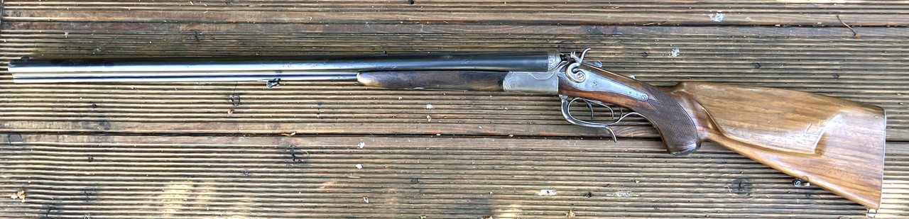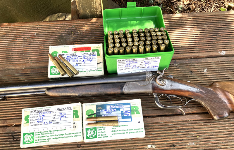 Versteigert wird der abgebildete deutsche Hahn-Drilling mit 16er Schrotläufen und Kaliber 8x57 R / 360. Der Drilling ist voll funktionsfähig und gültig beschossen und stammt aus dem Nachlass eines Sportschützen, der die 8x57 R / 360 selbst geladen hat.