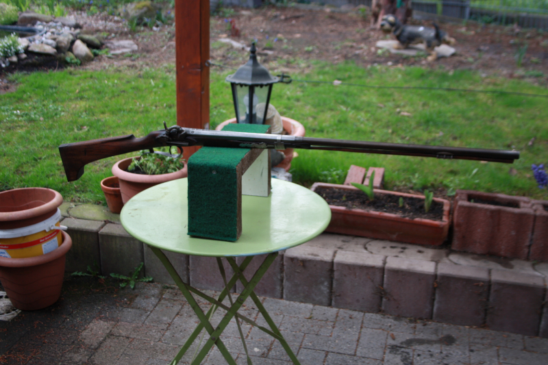 verkaufe abgebildete, einläufige spanische perkussionsflinte,BARRENECHEA EIBAR,ca um 1860. vermutlich kaliber 12(laufinnendurchmesser 17,8mm) oben am lauf verschiedene alte stempelungen.ich verkaufe die waffe als defekt da evt schrauben ergänzt worden sind oder fehlen,teil wird für versand zwei teile,lauf-schaft mit schloss zerlegt,da sonst überlänge.im ganzen gesehen ,eine schöne ,dekorative alte flinte.
