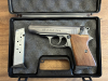 Zum Verkauf steht eine ME 9 Mod. Para (PTB 880) im edlen Titan-Look mit hochwertigen Holzgriffschalen.