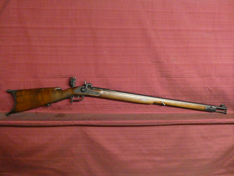 Absolute Rarität, Vollmer Stutzen im Originalkaliber 10,4 mm . hergestellt in den Vollmer Werken Biberach - Riss - Schweiz. Die Lauflänge der Büchse beträgt 81 cm, die Gesamtlänge misst 1276 cm. Die Brünirung der Waffe ist ohne nennenswerte Beschädigungen, am Schaftholz einige leichte Gebrauchsspuren , nichts schlimmes, vorhanden. Ausgestattet mit Perlkorn mit Kornschutzbacken,Diopter, Stecherabzug, eiserner Hakenschaftkappe und Riemenbügeln. Die Originalquadrantenkimme fehlt leider . Da lt.Hersteller insgesamt 1278 Stück hergestellt wurden und die vorliegende Waffe die SN 1189 hat ist es wohl eines der letzten Stücke gewesen. Bei der angebotenen Waffe handelt es sich um eine Waffe aus dem Privatbesitz eines meiner Freunde und wird ohne Garantie verkauft. Sollte der Käufer allerdings wider erwarten nicht zufrieden sein wird eine Rücknahme selbsversdtändlich angeboten.