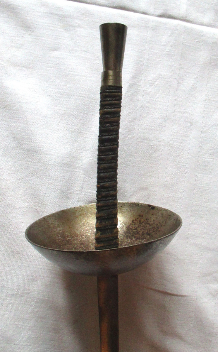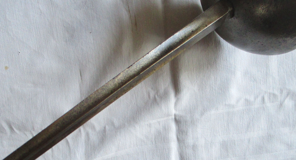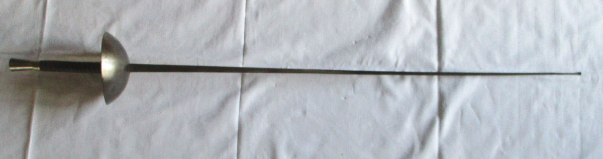 original alter; Florett Degen Studentenschläger Stoßdegen, mit drei - kanntklinge und Glocke. Auf dem Degen sind 3 Buchstaben; B.P.R. Gesamtlänge ca. 108 cm. Klingenlänge ca. 88 cm.