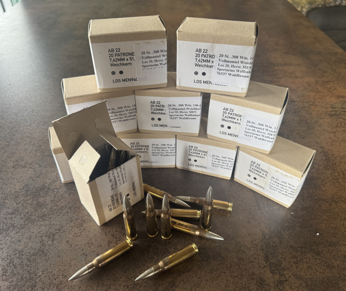 Die Originalbezeichnung lautet AB22 / 20 Patronen 7,2MM x 51MM Weichkern. Das Geschossgewicht ist 146 grs.