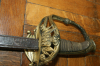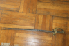 Biete hier einen spanischen Offiziersdegen an, Klappgefäß, verziert mit spanischem Wappen,Klinge gemarkt ano de 1855, art. Toledo Länge 90cm, massives Messinggefäß, Griff mit Fischhaut,sehr schönes altes dekoratives Stück