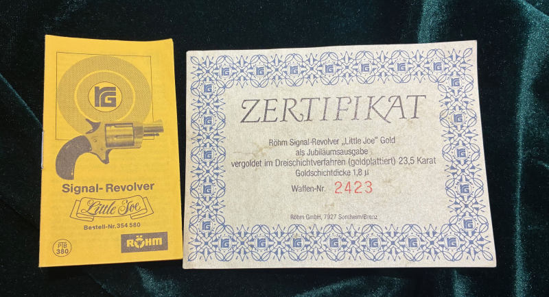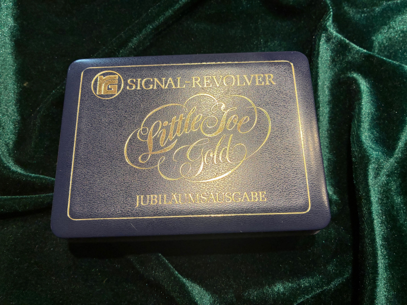 Ich biete hier aus familiärem Nachlass die Jubiläumsausgabe des Revolvers "Little Joe" in der 24 k vergoldeten Ausführung an.