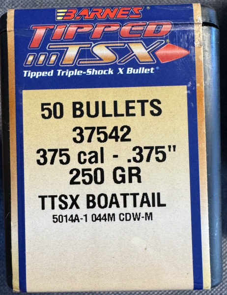 zum Verkauf stehen aus Wiederlader-Nachlass 50 Geschosse von Barnes TTSX BT .375 - 250 grain schwer. Sind originalverpackt.