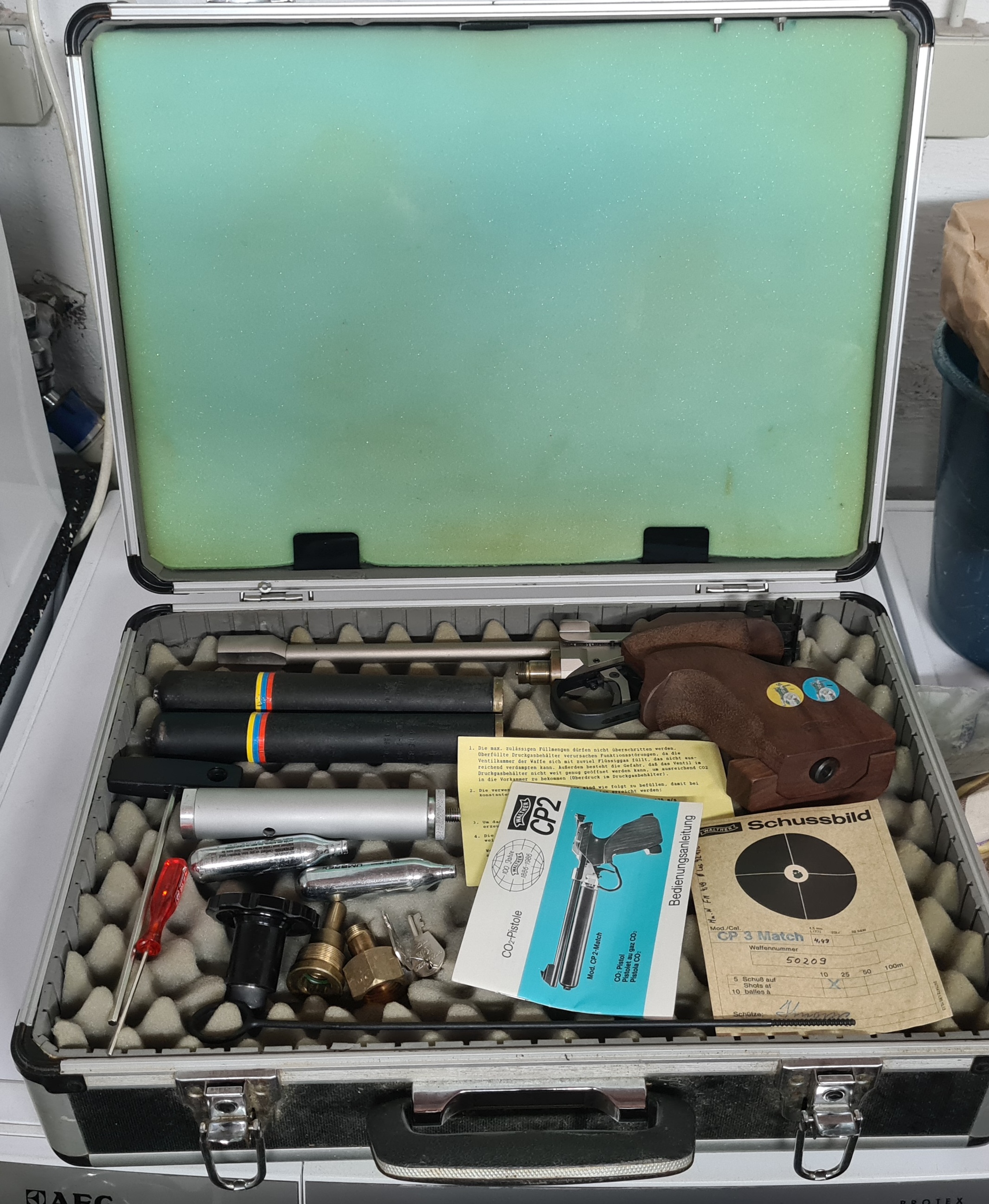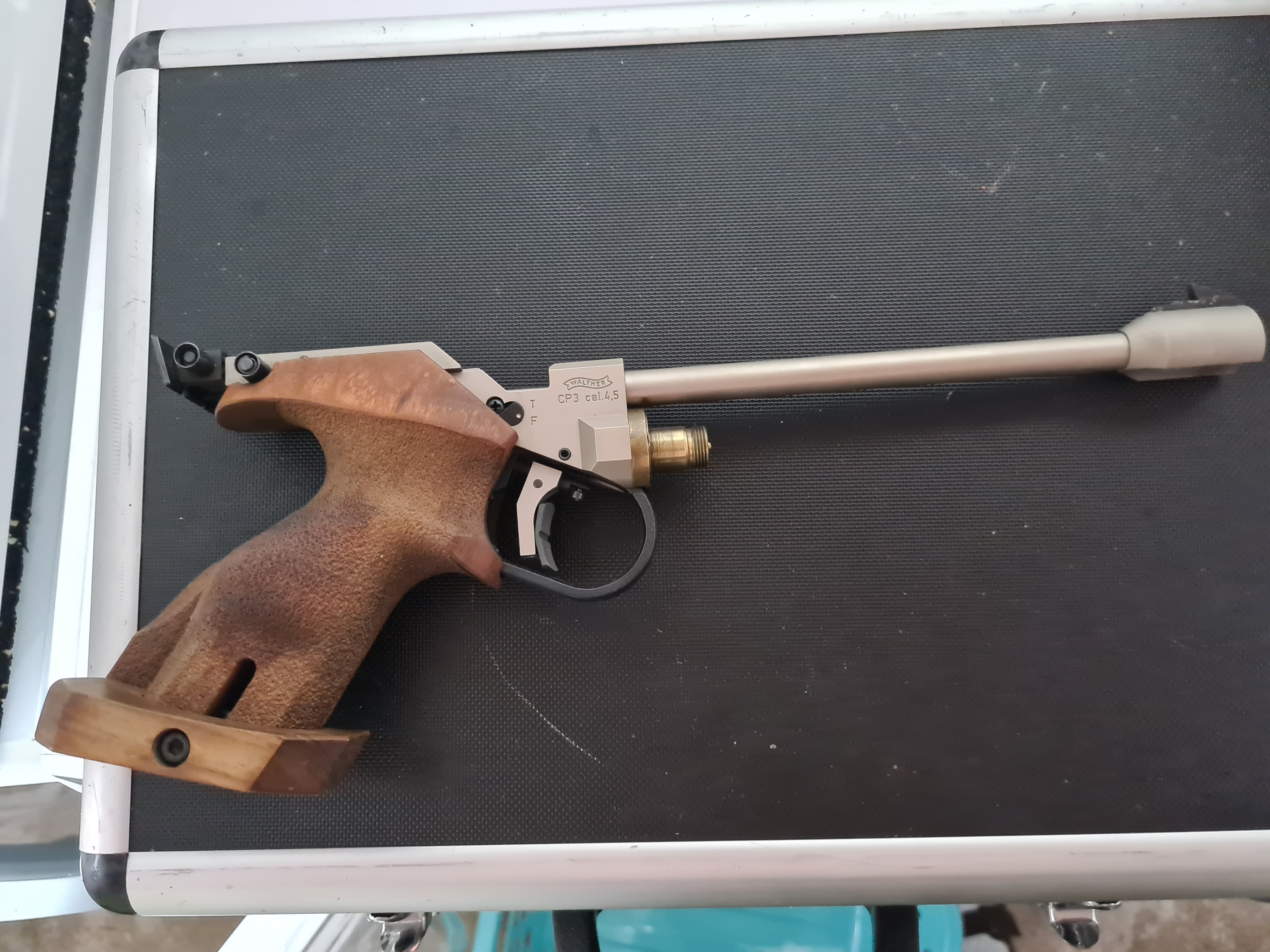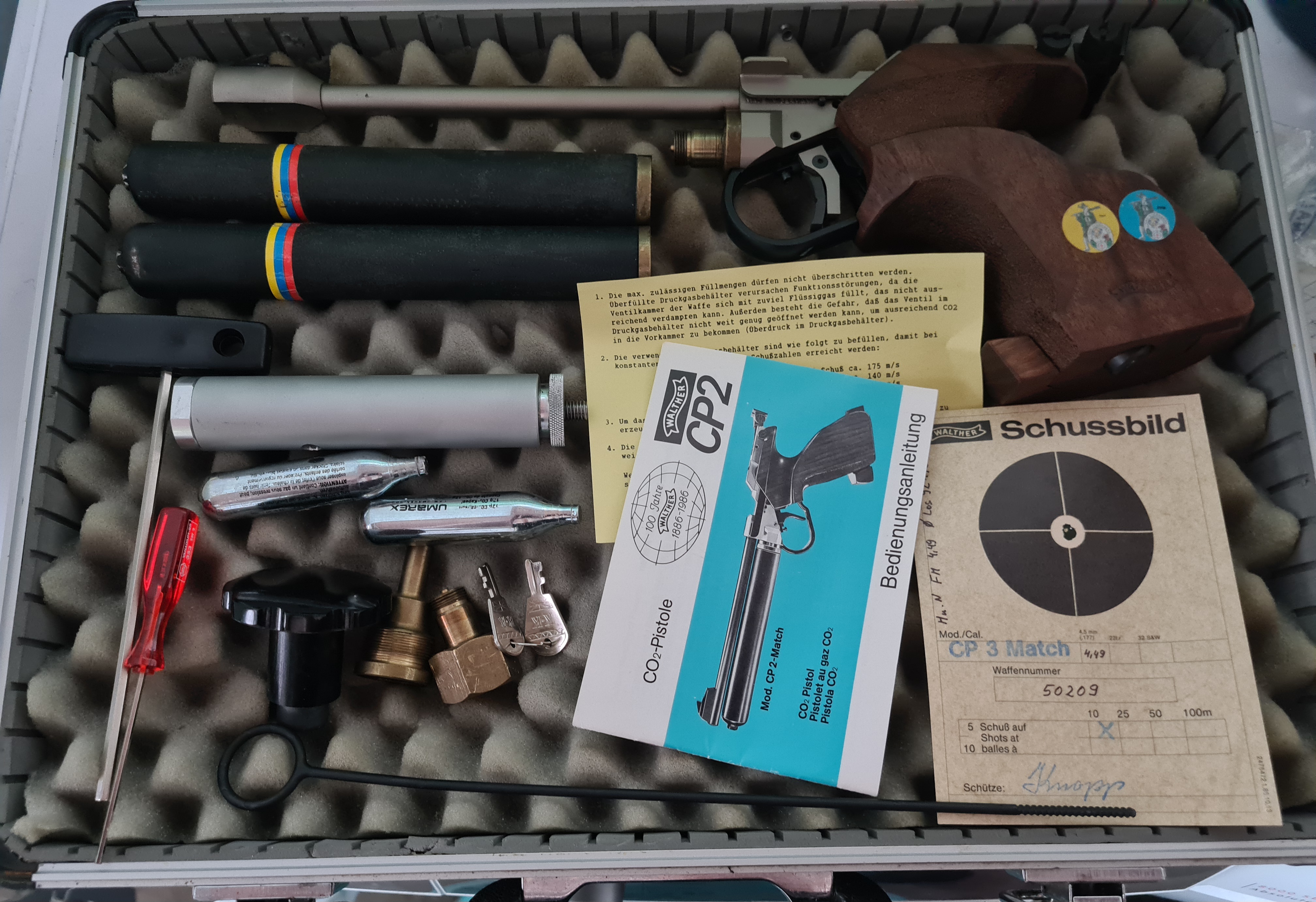 Biete noch eine Luftpistole von einem Schützenkollegen. Die Walther CP 3 ist in einem guten Zustand, sie wird mit CO2 betrieben. Die beiden Kartuschen haben keinen TÜV mehr, haben aber nach ca 2 Jahren immer noch Druck. Als Alternative ist ein Adapter von ME dabei, damit kann man Co2 Kapseln verwenden. Als Zubehör ist der Koffer mit Schlüssel, Werkzeug, Bedienungsanleitung und Schussbild. Keine Garantie und keine Rücknahme, Altersnachweis erforderlich, kein Versand ins Ausland.