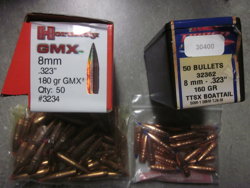 Sie bieten hier auf bleifreie Geschosse im Kaliber 8 mm (Dia .323) in der jeweiligen Originalverpackung aus einem Jäger/Wiederlader Nachlass