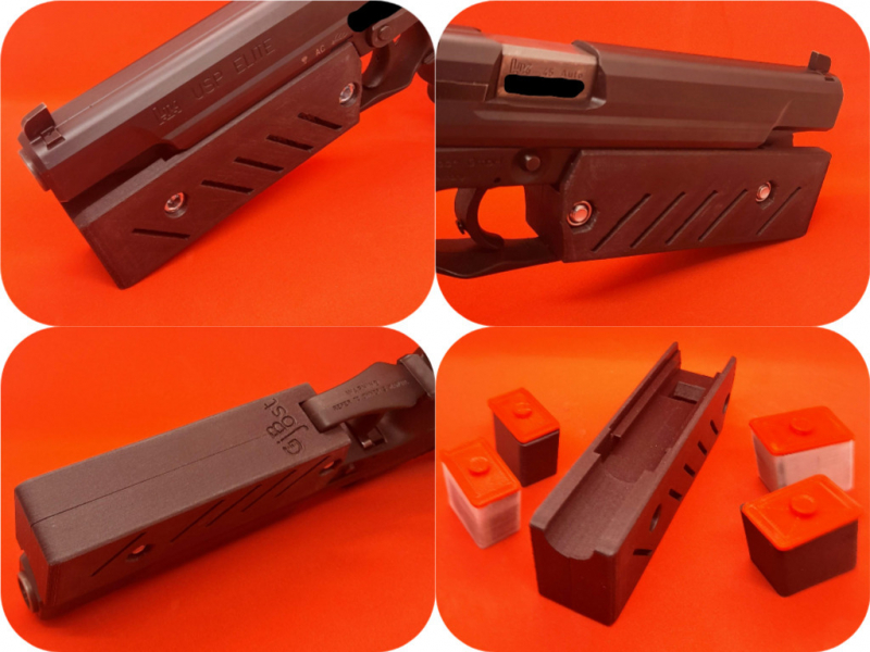 Pistole/Magazine im Bild nicht im Lieferumfang, ebenso werden nicht 4 sondern 2 Magazingewichte geliefert!