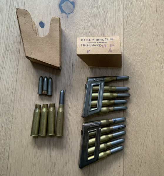 Verkauft werden die abgebildeten Deko Patronen inklusive Laderahmen Geschosse und Karton.