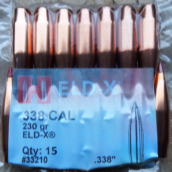 .338 / 8,59 mm 238 gr / 14.9 gramm HORNADY ELD-X Geschosse.
