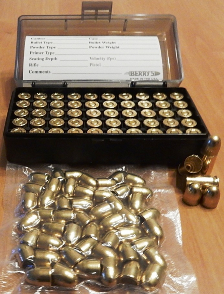 Die Hülsen befinden sich in der Box und die Geschosse sind eingeschweißt.