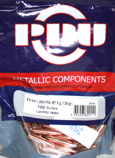 100 Stück PPU | PrviPartizan Geschosse #B-083 | .264/6,5MM 139gr/9g FMJ BT Vollmantel BoatTail