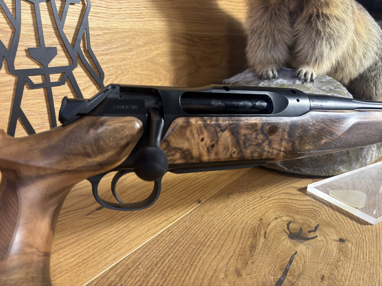 Schaft/Lauf: 17mm Schaftlänge: 37cm Schaft: Iconic, Holzklasse 5 Kaliber: .308Win Gewinde: M15x1 Lauflänge: 51cm Visierung: ohne Kammerkugel: Alu 23mm, gerändelt