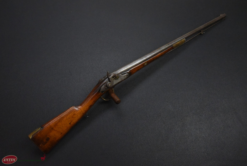 Die Waffe wurde, wie in der Zeit nach ca. 1820 oft, von Steinschloss auf Perkussions umgebaut.