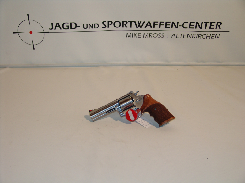 Hier bieten wir einen Revolver Rossi im Kaliber .357Mag. Die Waffe ist stainless und hat eine ungeflutete Trommel. Die Lauflänge beträgt 4 Zoll. Der Lauf ist innen blank, kein Rost. An der der Waffe befinden sich Holzgriffschalen mit Fingermulden. Die Waffe ist in einem gepflegten Zustand. Das Kimmenblatt ist auf einer Seite defekt, siehe bilder.