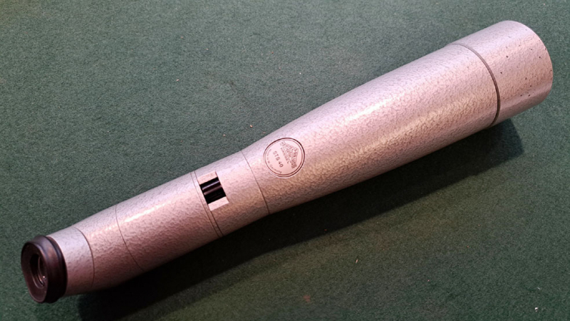 Zur Versteigerung kommt hier ein gebrauchtes, älteres Hertel Reuss Spektiv STS 40 (40x60). Das Spektiv hat einen um 90 Grad nach links drehbaren Schrägeinblick, ist 366 mm lang, wiegt 1,04 Kilogramm und befindet sich in einem sehr guten, technisch und optisch einwandfreien Zustand (siehe Bilder) mit leichten Gebrauchsspuren, leider ist das Gummi am Okular eingerissen. Das Spektiv wird im Original Lederköcher an den Höchstbieter geliefert.