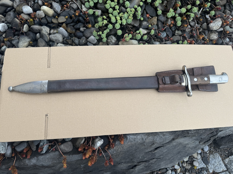 Sie bieten auf ein Faschinenmesser 1914 (auch Sägebajonett 1914 genannt) mit Lederscheide Das Bajonett ist in einem gebrauchten Zustand (siehe Karabiner 00/11 hergestellt ist es von H&SEs passt super auf jeden Karabiner 31 (K31), von den Massen her passt es aber auch auf den Karabiner 11 (K11) und den Karabiner 00/11 (K00/11).