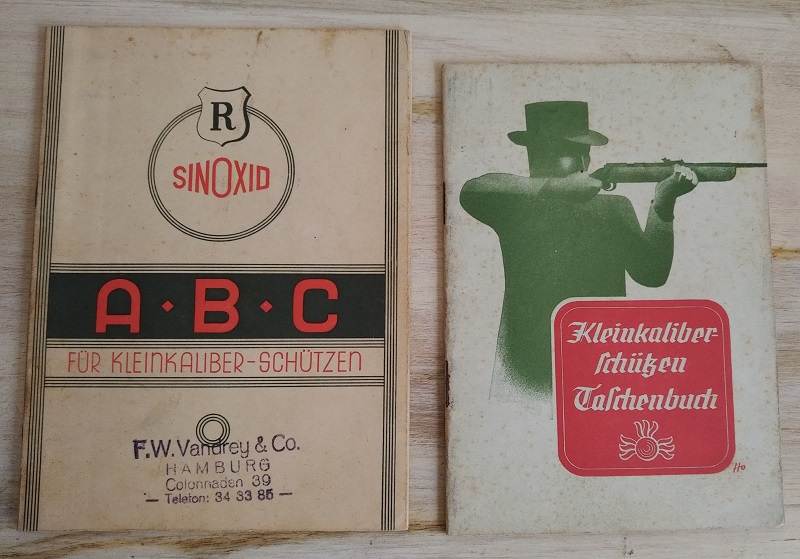 Sie bieten auf zwei seltene Taschenbücher für Kleinkaliberschützen aus der Zeit des Dritten Reiches, einmal 48 und einmal 40 Seiten, bebildert, viele balistische Tabellen und technische Zeichnungen/Erklärungen. Gedruckt 1939 (6/39) und 1937. Umschläge gedunkelt und verschmutzt, Seiten gedunkelt, sonst guter Zustand für das Alter, siehe Photos.