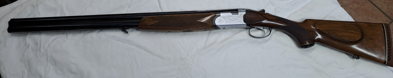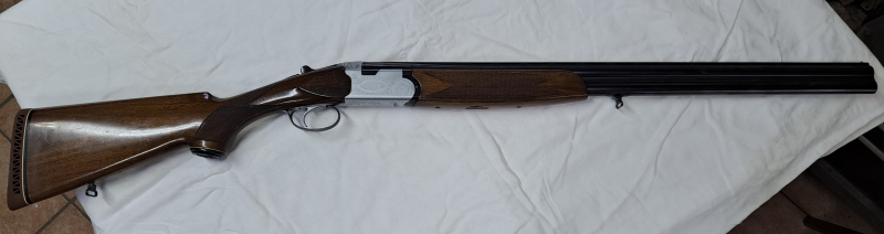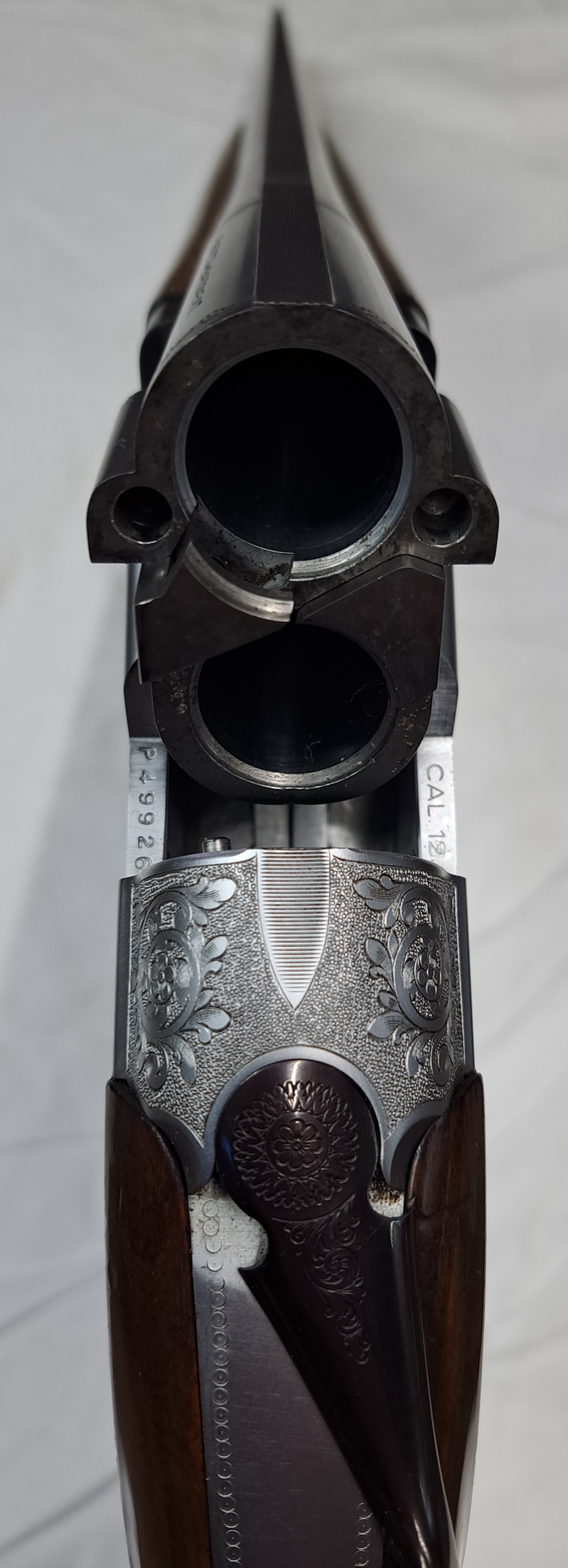 Der Lauf oben ist voll Choke und der untere halb Choke. Ebenso verfügt die Flinte über Ejektoren und einer Laufumschaltung in der Sicherung. Flinte hat keine Lilie und ich denke somit auch keinen Stahlschrot Beschuss