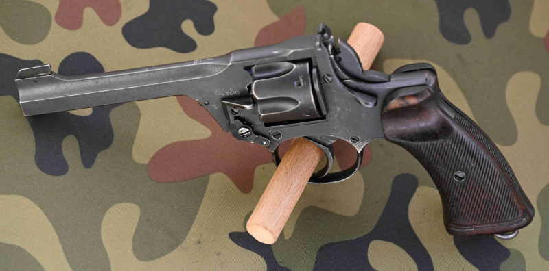 Schwere Qualität aus der frühen Kriegszeit, interessant für Sammler von alliierter Militärbewaffnung und Ordonnanzrevolvern.