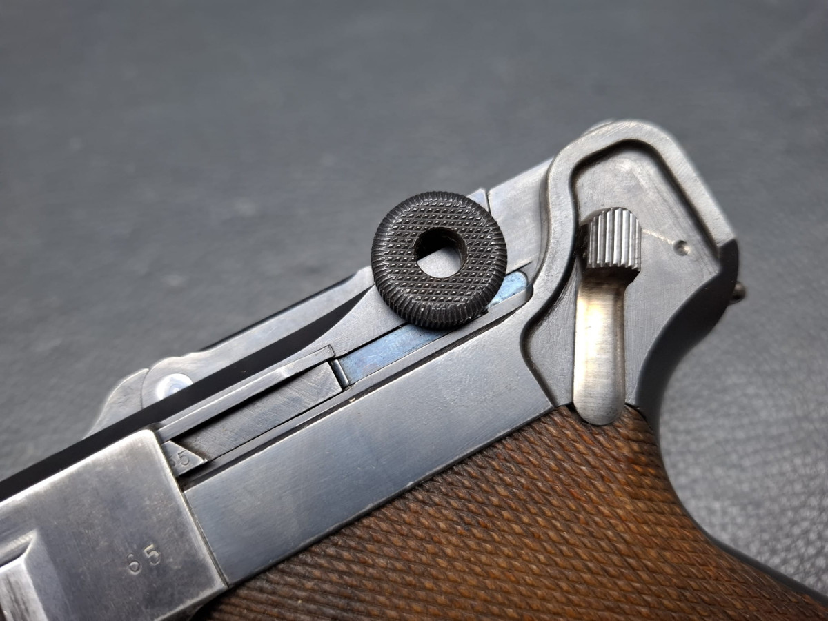 Brünierung und Anlassfarben partiell etwas abgegegriffen oder berieben, verhältnismäßig aber noch sehr gut