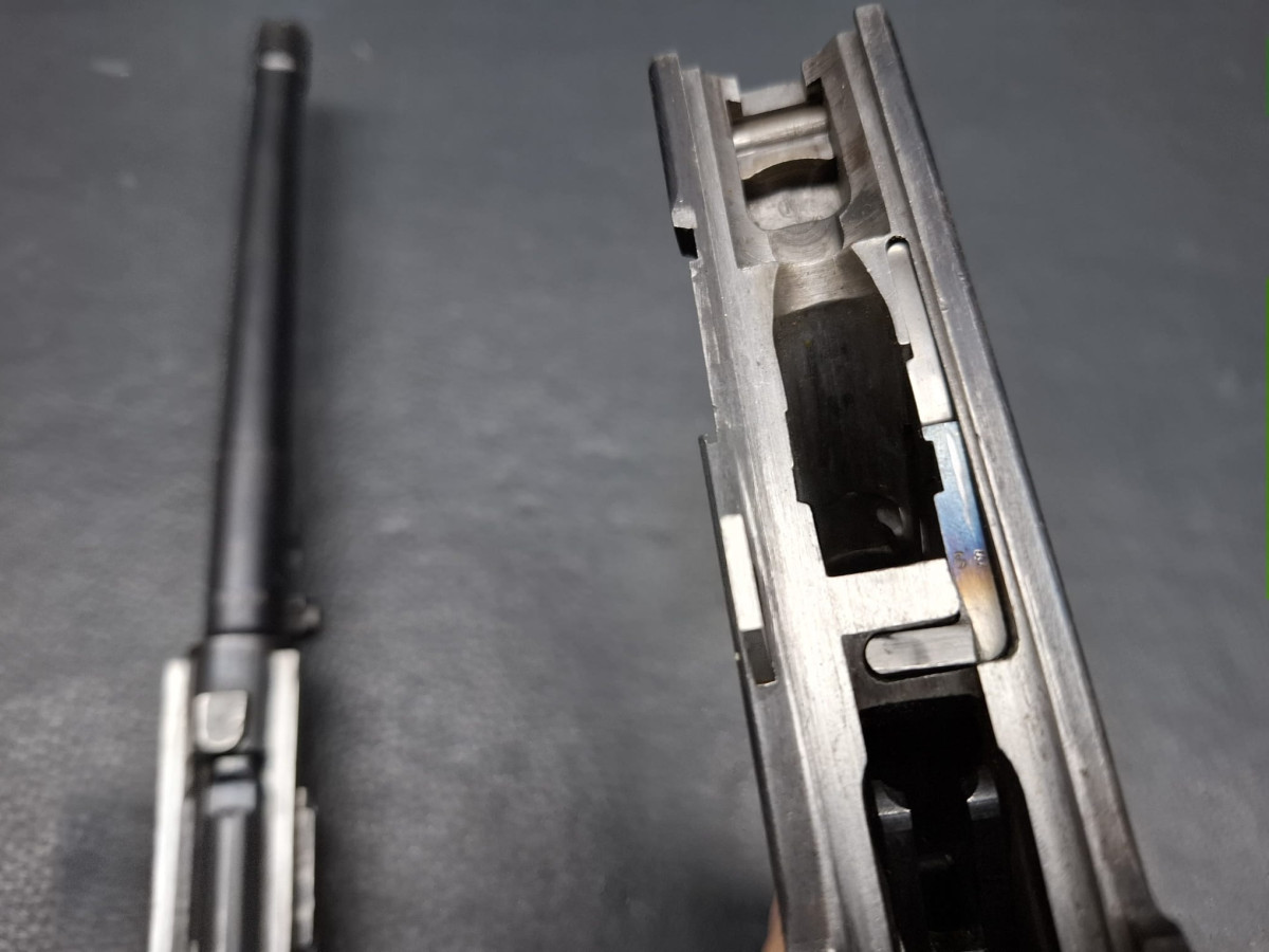 Waffe ist komplett nummerngleich inkl. Magazin, Griffschalen, Schlagbolzen etc