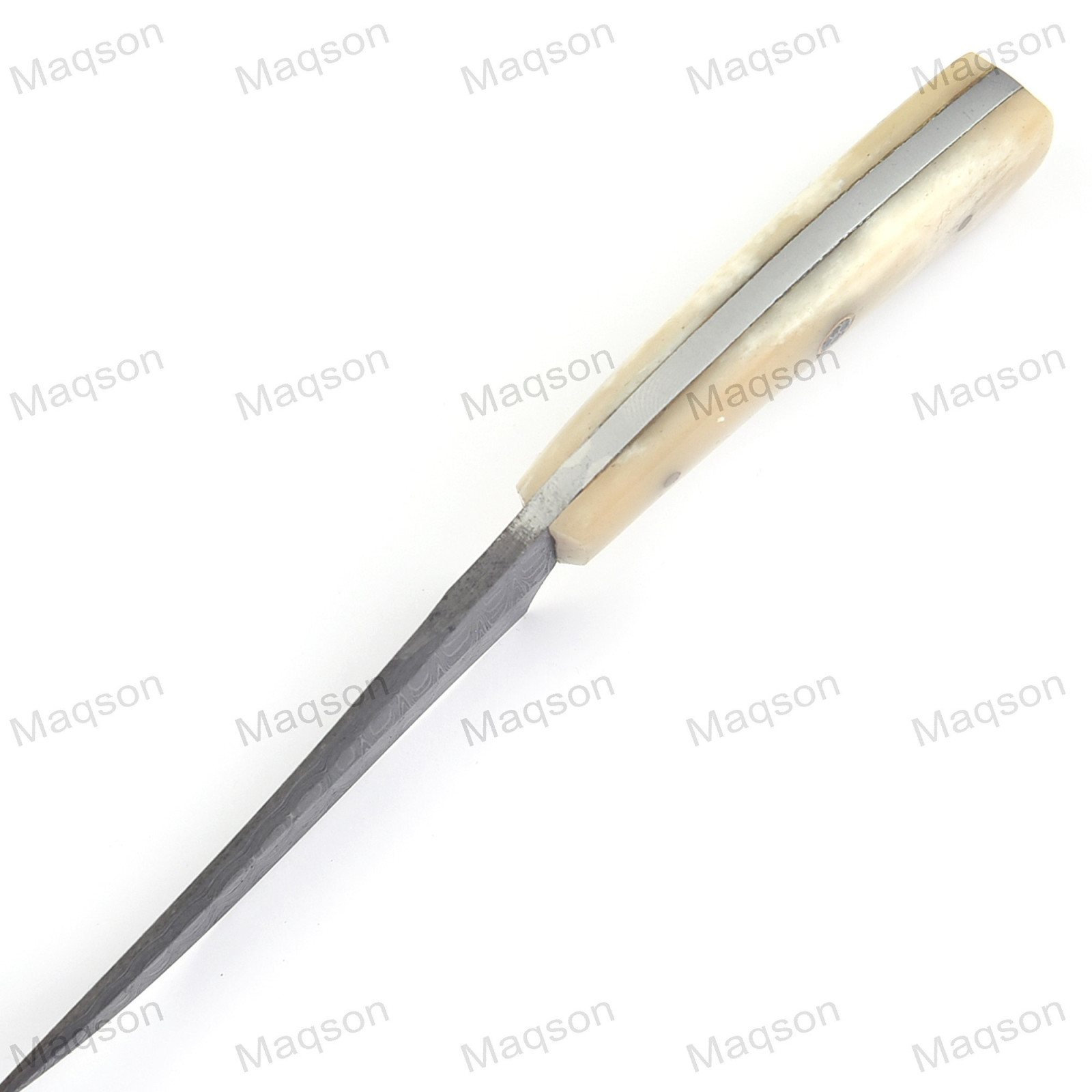 Unser Damaszener wird sehr aufwendig aus zwei verschiedenen Stahlsorten 1095 & 15N20 handgeschmiedet. Durch fünffaches Verdoppeln der Stahllagen und erneutes Schweißen wird die Anzahl der Lagen so vervielfacht. Somit besteht unser Damaszener aus 288 Lagen. Dies zeichnet unsere Messer durch seine lang bleibende Schärfe, Zähigkeit und Härte aus.