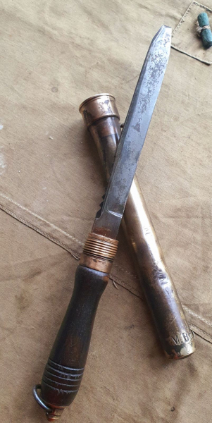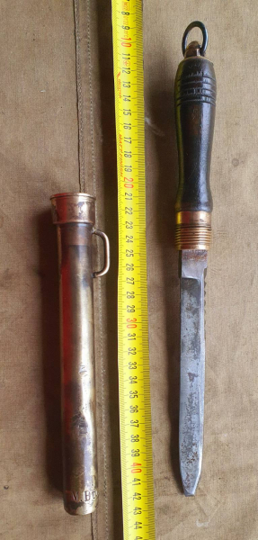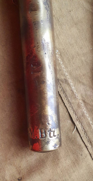 Auf dem Messer befindet sich eine Markierung „M.Btl“. Nach meiner persönlichen Einschätzung könnte dies möglicherweise für „Minen-Bataillon“ stehen, dies ist jedoch lediglich meine eigene Annahme ohne fachliche Bestätigung.