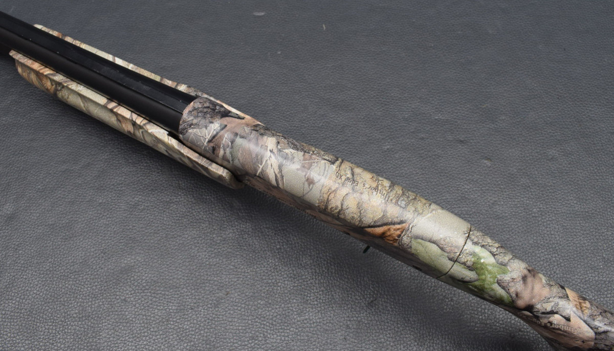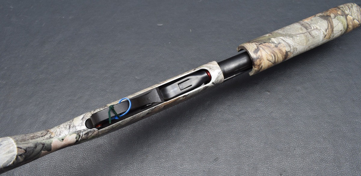 Druckknopfsicherung am Abzugsbügel, Magazinrohr unter dem Lauf.