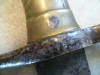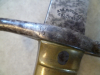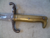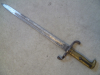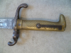 Bajonett wie abgebildet, Messinggefäß in guter Erhaltung, Klinge mit Oxidation, Drücker funktioniert.