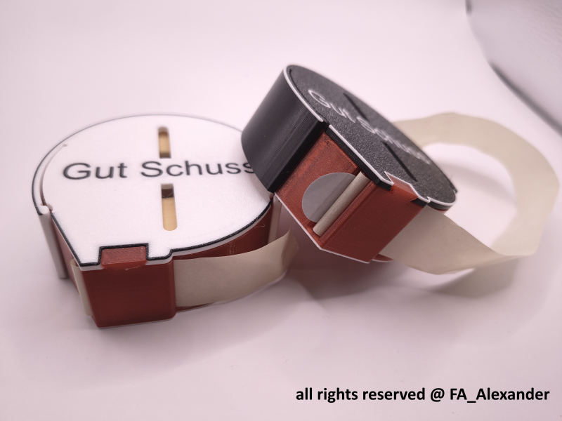Dieser praktische Helfer macht Schluss mit den nervigen Kartonspendern, keine Doppelungen usw. mehr und bringt Ordnung beim Abkleben der 10er ;-). Passgenauer Formschluss mit sehr guter Selbsthemmung der beiden Hälften, mit Sichtschlitzen um nicht von einer leeren Box überrascht zu werden. Seit langen bei uns im Verein im Einsatz, durch den Praxiseinsatz und den Rückmeldungen, ein zuverlässiges und schickes Helferlein.