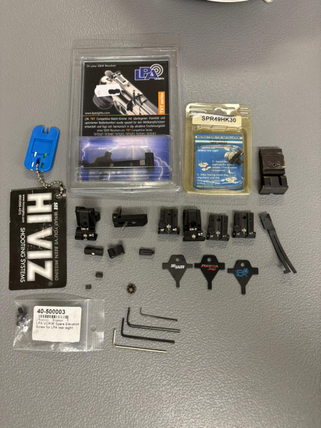 enthalten sind verschiedene LPA Kimmen, Werkzeug zum vertsellen der Visierungen und Erstazteile.