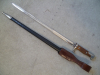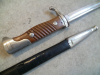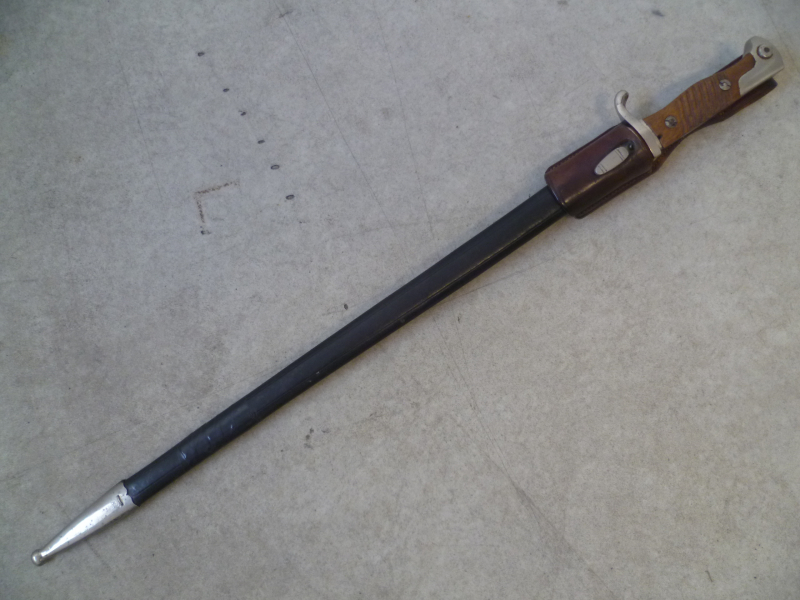 Bajonett wie abgebildet, Griffschalen sehr gut, Klinge (war nie scharf) noch gut erhalten, ein paar kleine Oxidationsspuren, Drücker funktioniert.