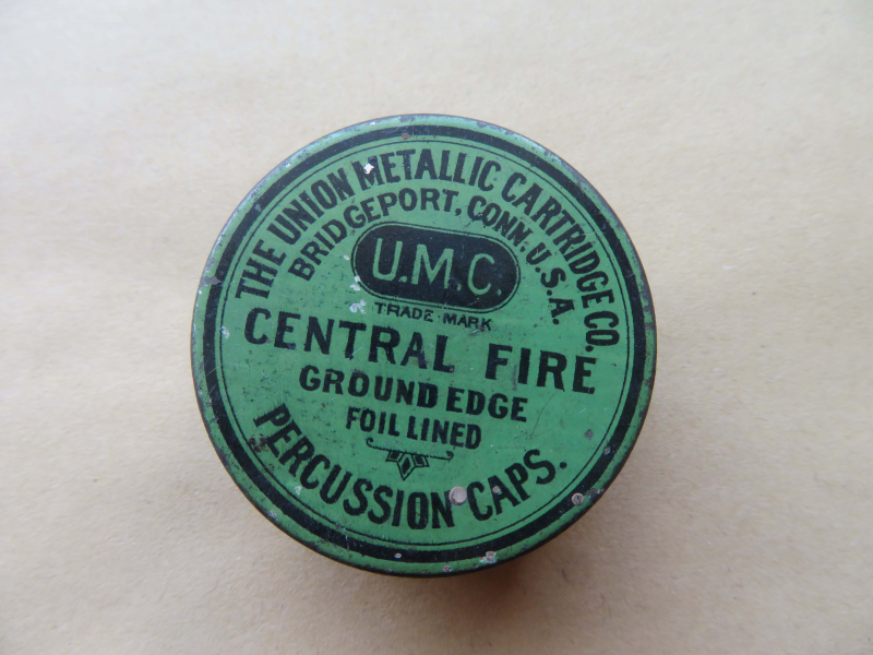 Antike Zündhütchen Dose The Union Metallic Cartridge - Central Fire-. Die Dose hat einen Durchmesser von 4 cm und sie ist 1,8 cm hoch. Guter gebrauchter Zustand ohne Dellen. -keine Gewährleistung und keine Rücknahme-